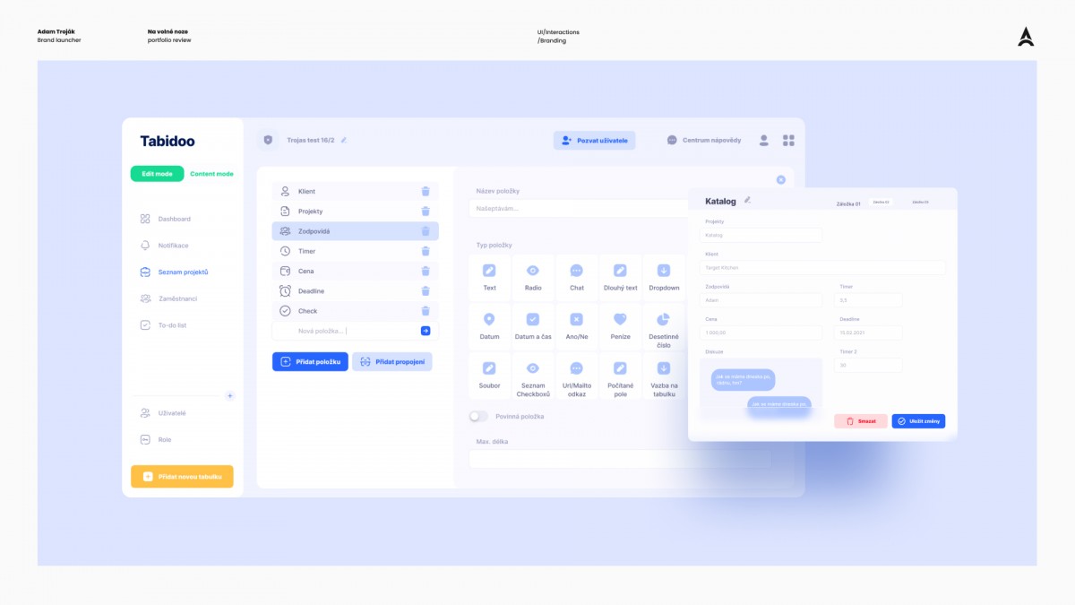 PředchozíSaaS dashboard s důrazem na přehlednost a vizuální hierarchii | TabidooModerní dashboard s důrazem na přehled a vizuální rovnováhu | TabidooDashboard pro efektivní práci s daty a vizuální prioritizaci | TabidooSaaS dashboard zaměřený na přehlednost a jasnou vizuální strukturu | TabidooDashboard pro SaaS s důrazem na čistotu a vizuální orientaci | TabidooDalší