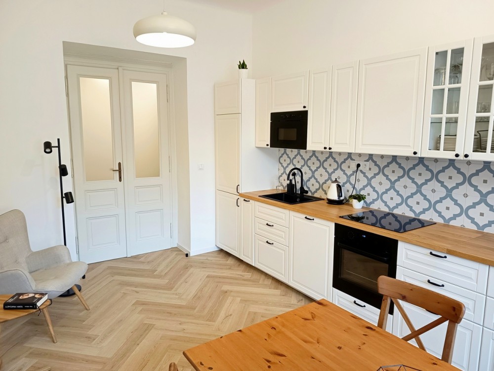 Krémová kuchyně s retro obkladem