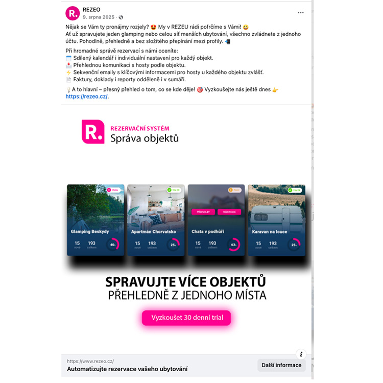 Správa objektů | copy a grafika pro sociální média, REZEO