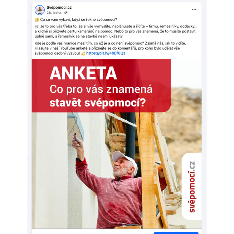 PředchozíZimní soutěž | copy pro sociální média Svépomocí.czSoutěž na Facebooku | copy pro sociální média Svépomocí.czAnketa | copy pro sociální média Svépomocí.czStřecha zdarma | copy pro sociální média Svépomocí.czFilmED | copy a grafika pro sociální médiaDalší