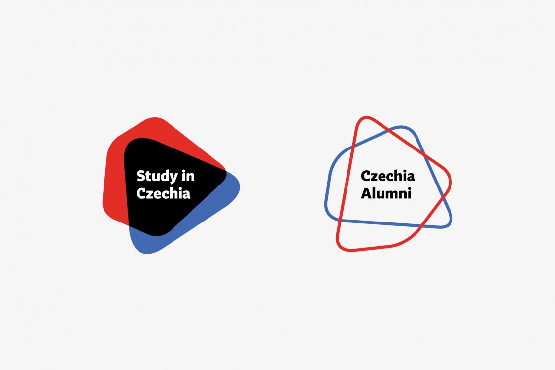 Dvojice log v českých národních barvách reflektuje dynamiku studentského života i akademického prostředí.
