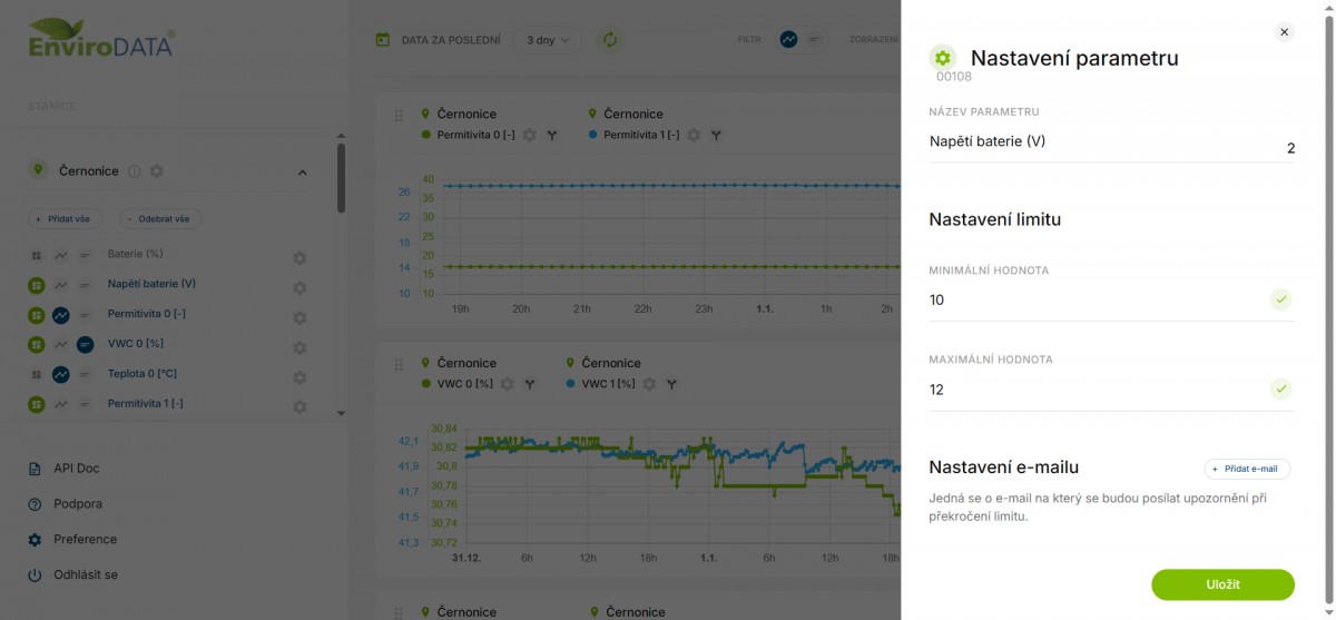 Aplikace má podrobná uživatelská nastavení a nastavení zobrazování pro stanice, grafy i tabulky.