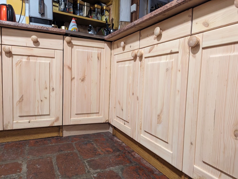 Výměna dvířek kuchyně na chalupě v jizerských horách. Korpusy kuchyně zůstaly jak jsou, ale nová dvířka z ní dělají téměř novou kuchyni.