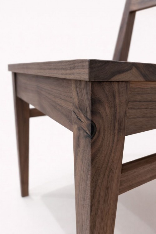 Výrazná kresba amerického ořechu na rohu židle.