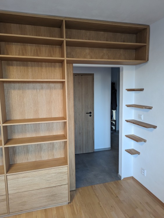 PředchozíKnihovna z dubové dýhy na míruDubová knihovna na míruDubová knihovna se zápustnými dveřmiSkříně z lakovaného smrkuŠatní skříně s oknemDalší