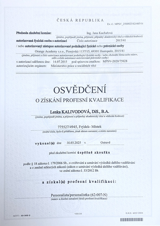 Lenka Kalivodová, DiS., B.A.HR konzultantka a lektorka v oblasti HR, office managementu a soft skills — Personalistika, HR poradenství a firemní vzdělávání pro firmy, instituce i jednotlivce. Nastavení personálních a administrativních procesů, rozvoj zaměstnanců, rekvalifikační kurzy, workshopy a odborné přednášky s praxí od roku 2006.