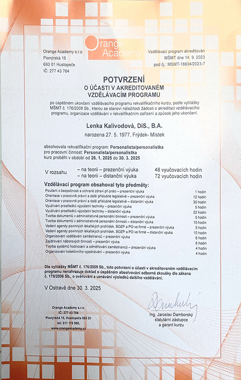 Potvrzení z kurzu Personalistika