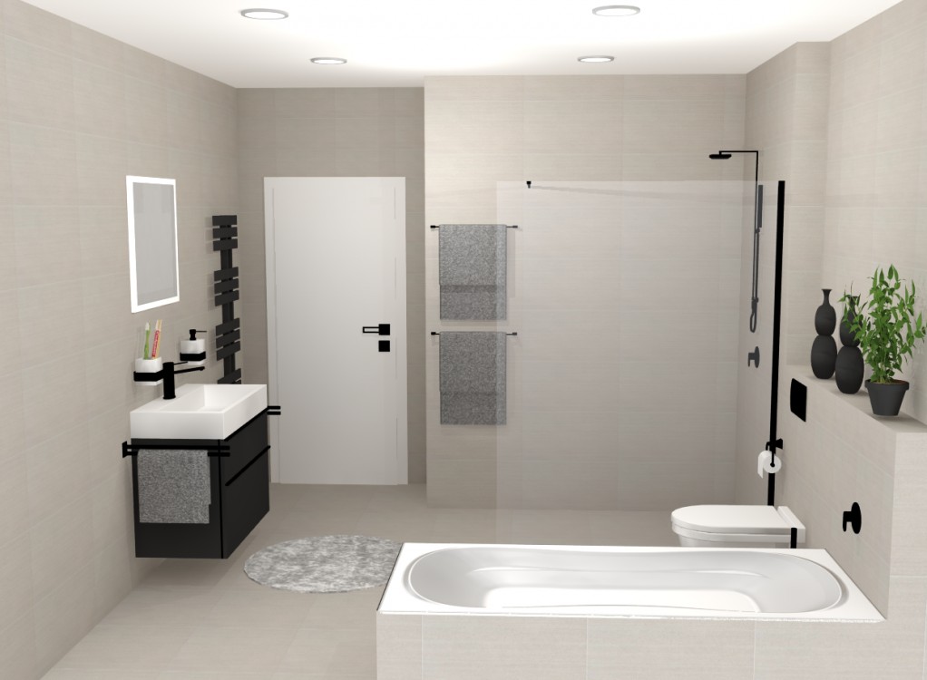 Koupelna v 2. NP s čistým a funkčním řešením