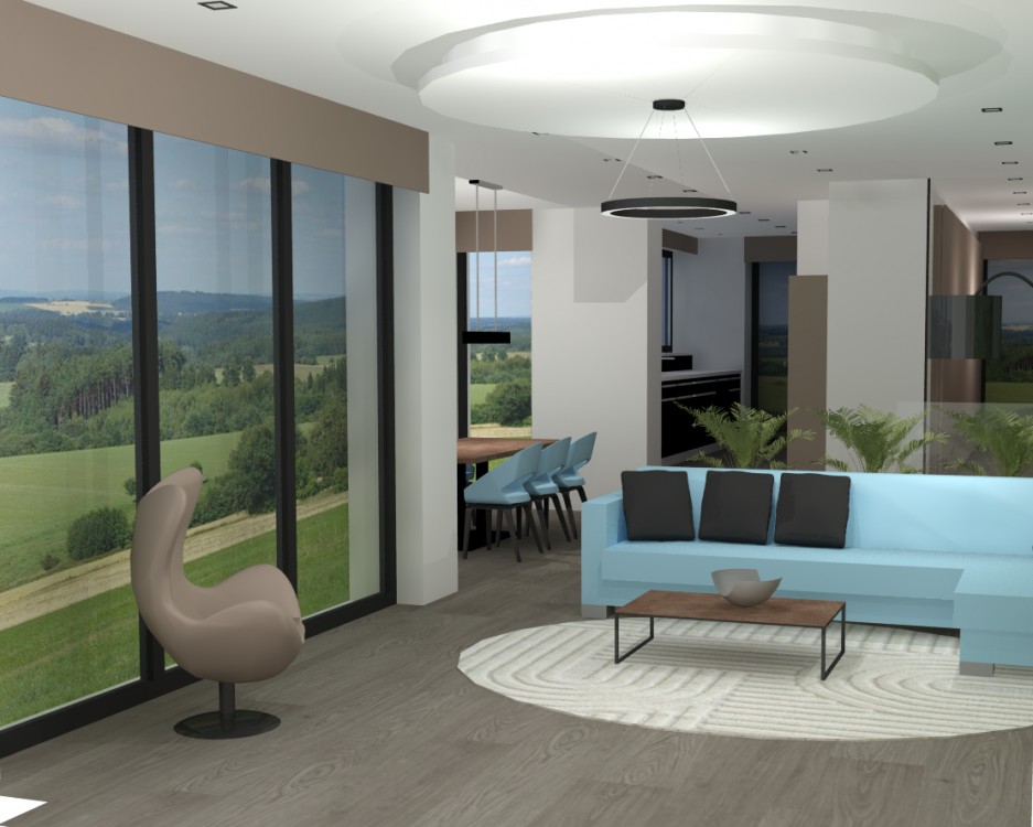 PředchozíObytný prostor rodinného domu s výhledem do zahradyObývací pokoj s velkými okny a přímým propojením do exteriéruDenní zóna rodinného domu s terasou a zahradouPrůhled z interiéru do obytného prostoru a venkovní zeleněChodba rodinného domu s čistým a vzdušným řešenímDalší