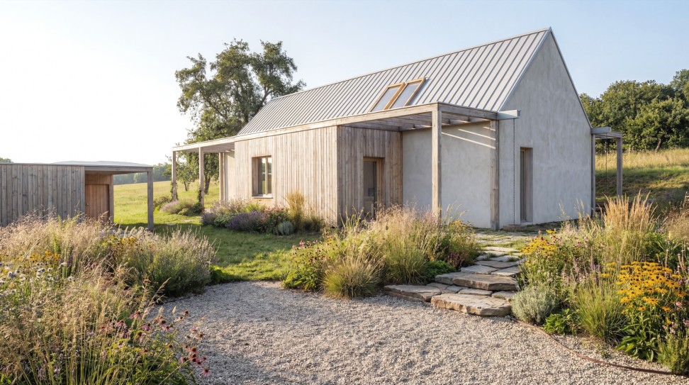 Dům z pravdivých materiálů v jejich přirozené podobě.