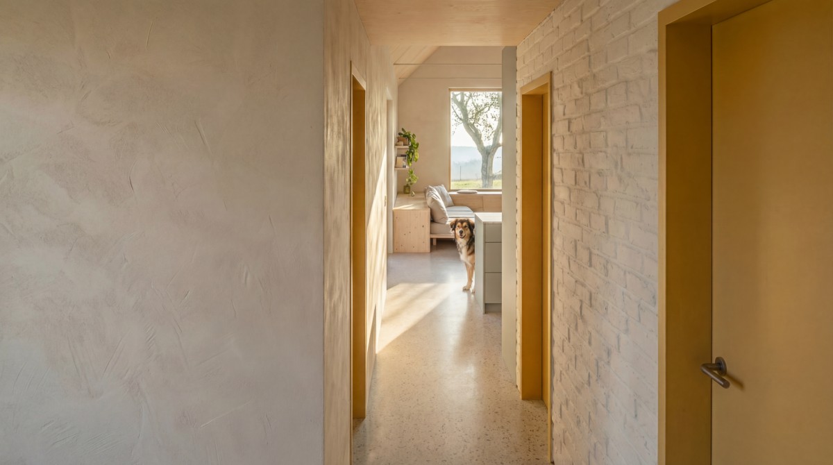 PředchozíDům je rám, příroda obraz. Vše je zde podřízeno stále se měnící paletě barev a výhledů.Dům z pravdivých materiálů v jejich přirozené podobě.Recyklované cihly z původní stodoly vracíme do hry v interiéru nového domu.Stará hrušeň za oknem jako těžiště domu a výchozí bod pro jeho umístění.Velkorysost není výsledkem velikosti, ale jasně nastavených priorit.Další