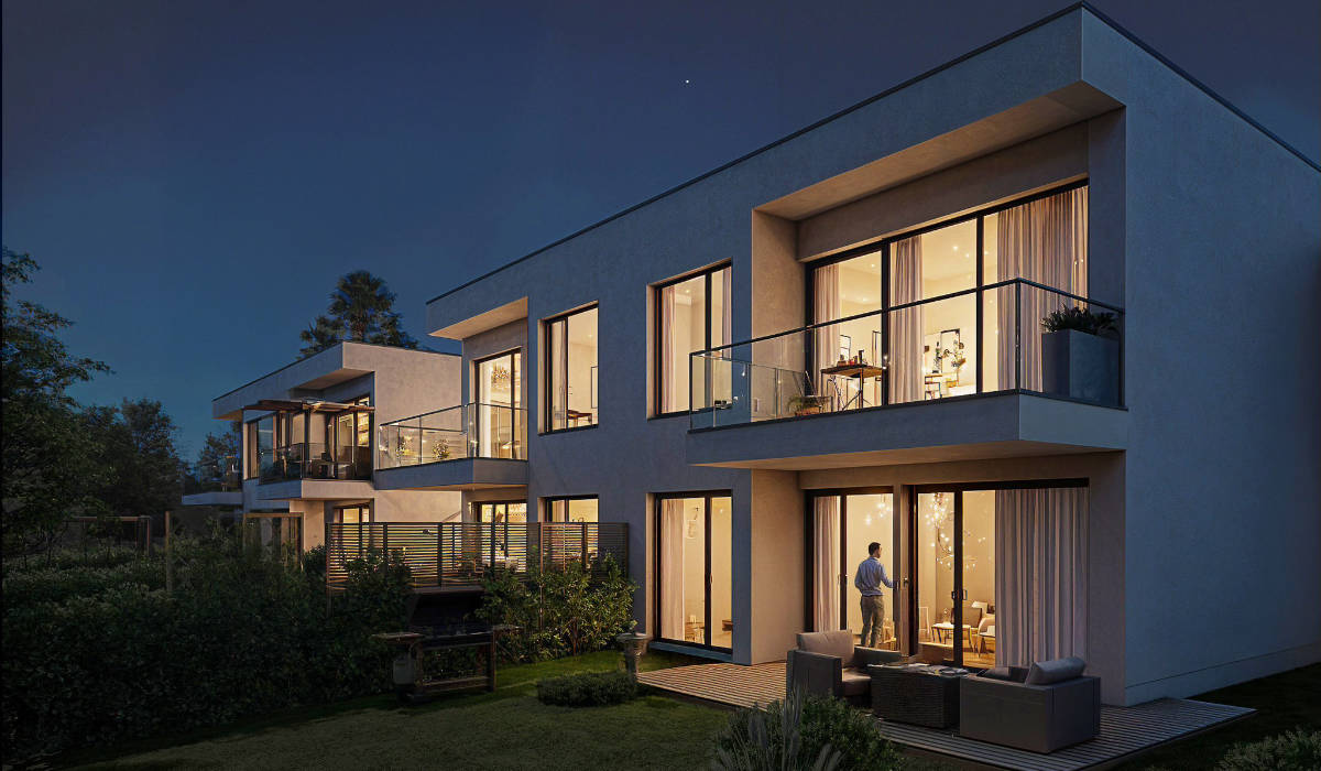 Vizualizace developerského projektu Vily Řevnice - Praha (noční pohled)