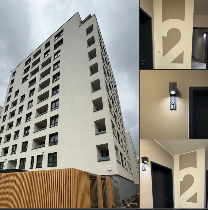 Pro společnost PP53 a developera FINEP jsme navrhli a realizovali orientační systém budov v nových bytových domech na pražské Harfě.