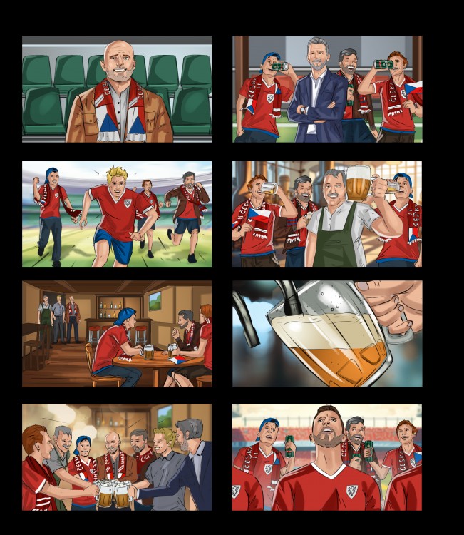 Ilustrace storyboardu pro reklamní spot Staropramen
