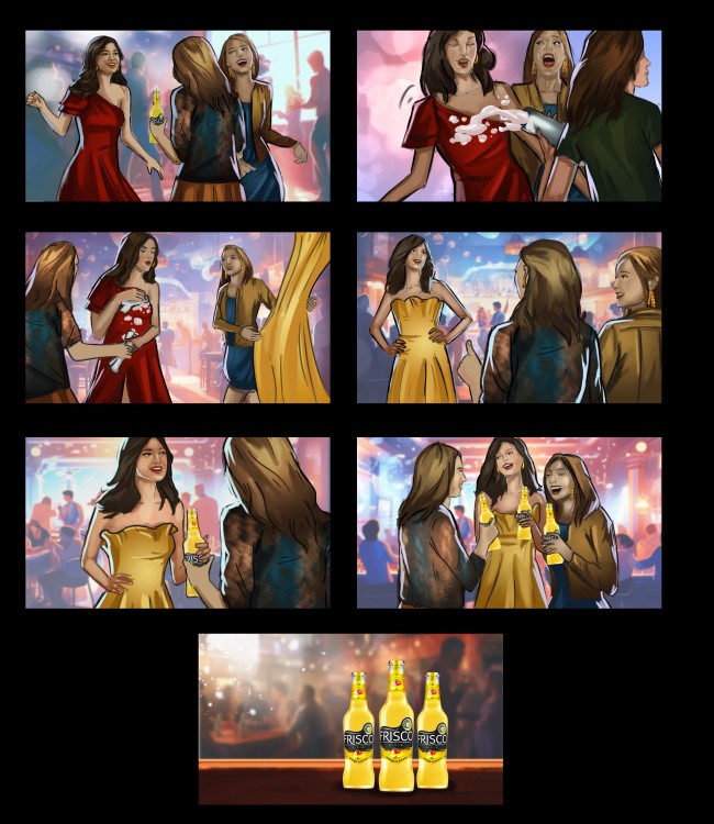 Ilustrace storyboardu pro reklamní spot Frisco