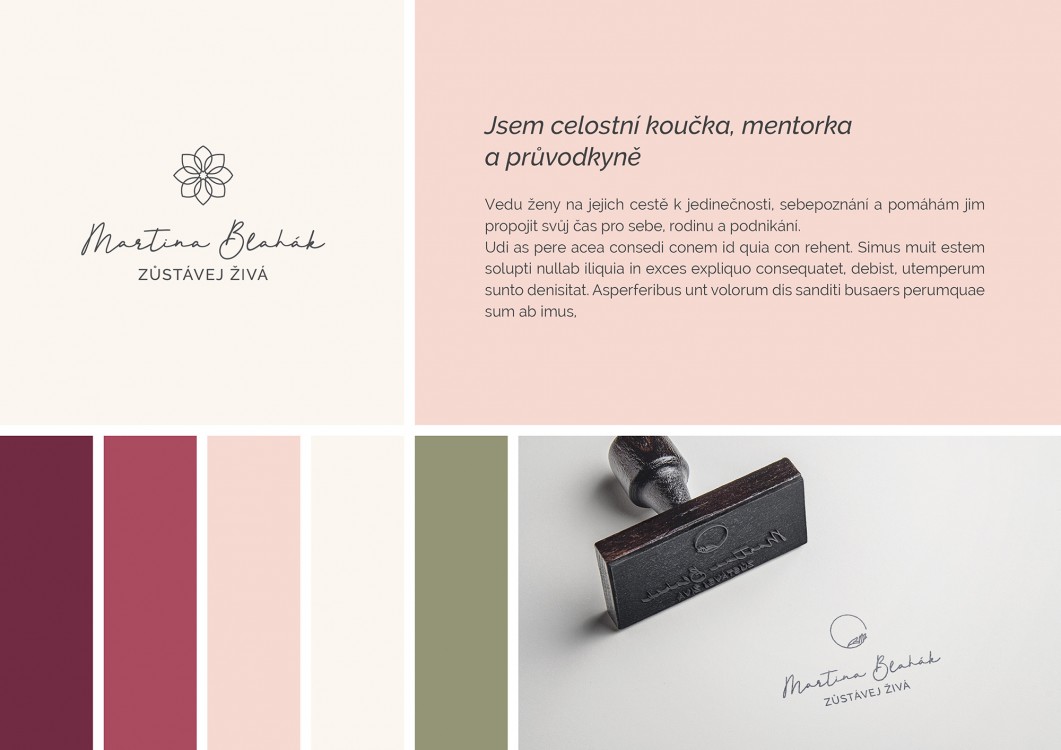 Jednalo se o návrhy loga, barevné palety a výběr vhodných písem. Klientka obdržela i manuál značky (tzv. Brand Board), aby věděla, jak s ní dál pracovat.