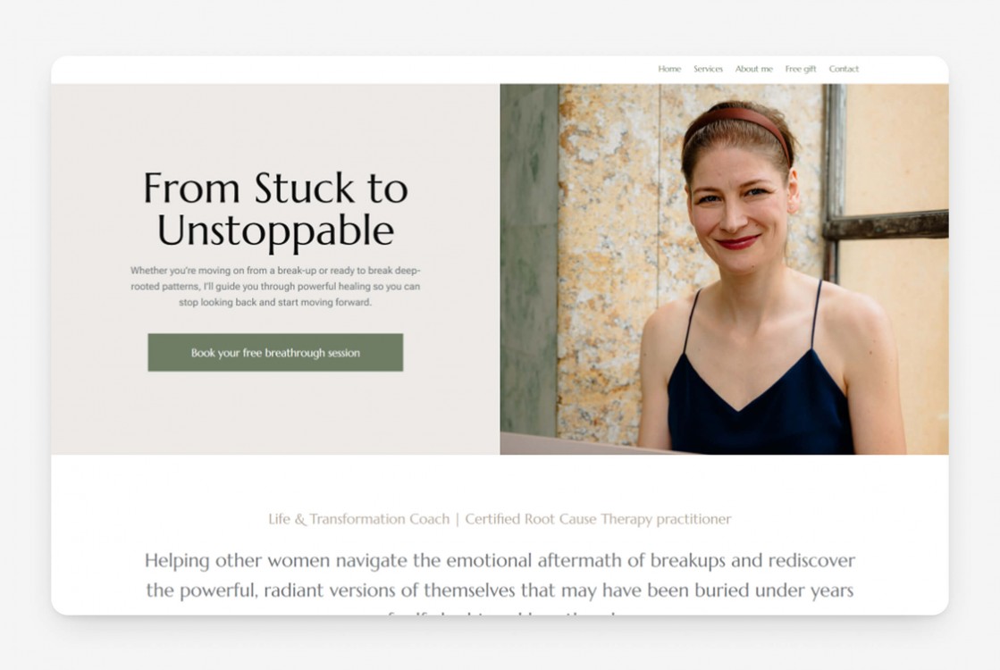 Web pro koučku s osobní fotografií a výzvou k objednání úvodního sezení