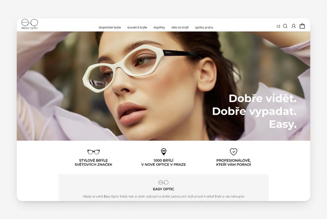 E-shop a web optiky Easy Optic se stylovými brýlemi a čistým designem