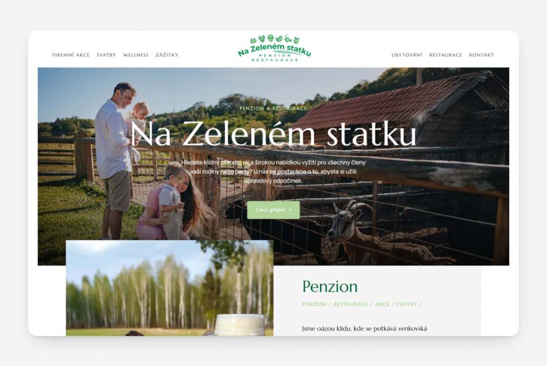 Web penzionu Na Zeleném statku s důrazem na klid, rodinu a zážitky