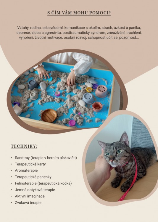 psychoterapeutka, terapeutka a průvodkyně v náročných životních situacích — Individuální terapie pro děti, dospívající i dospělé s využitím sandtray techniky, terapeutických karet a dalších metod zaměřených na vnitřní stabilitu, práci s emocemi a obnovu psychické rovnováhy. Bezpečný a respektující přístup.