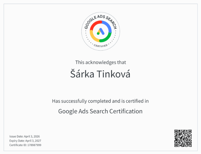Certifikát Google Ads