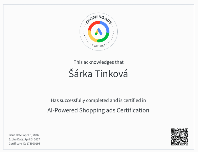PředchozíCertifikát Google AdsCertifikát Google DisplayCertifikát Google Shopping