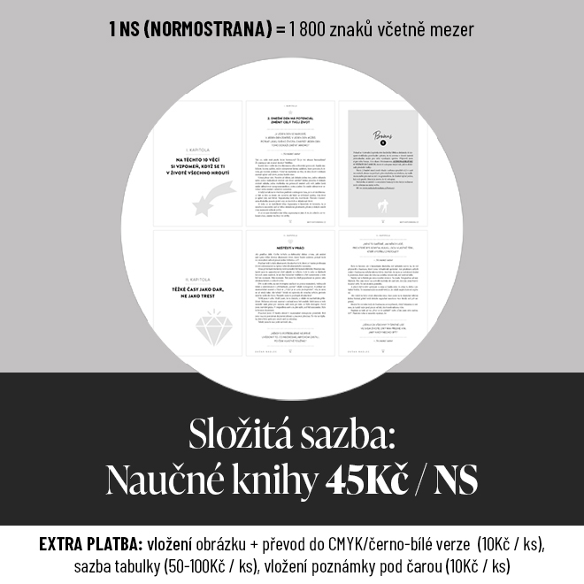 PředchozíCeník - Knižní obálkaCeník - Knižní sazba - hladkáCeník - knižní sazba - složitáCeník - knižní sazba - sloupcováCeník - Leták (1 strana)Další